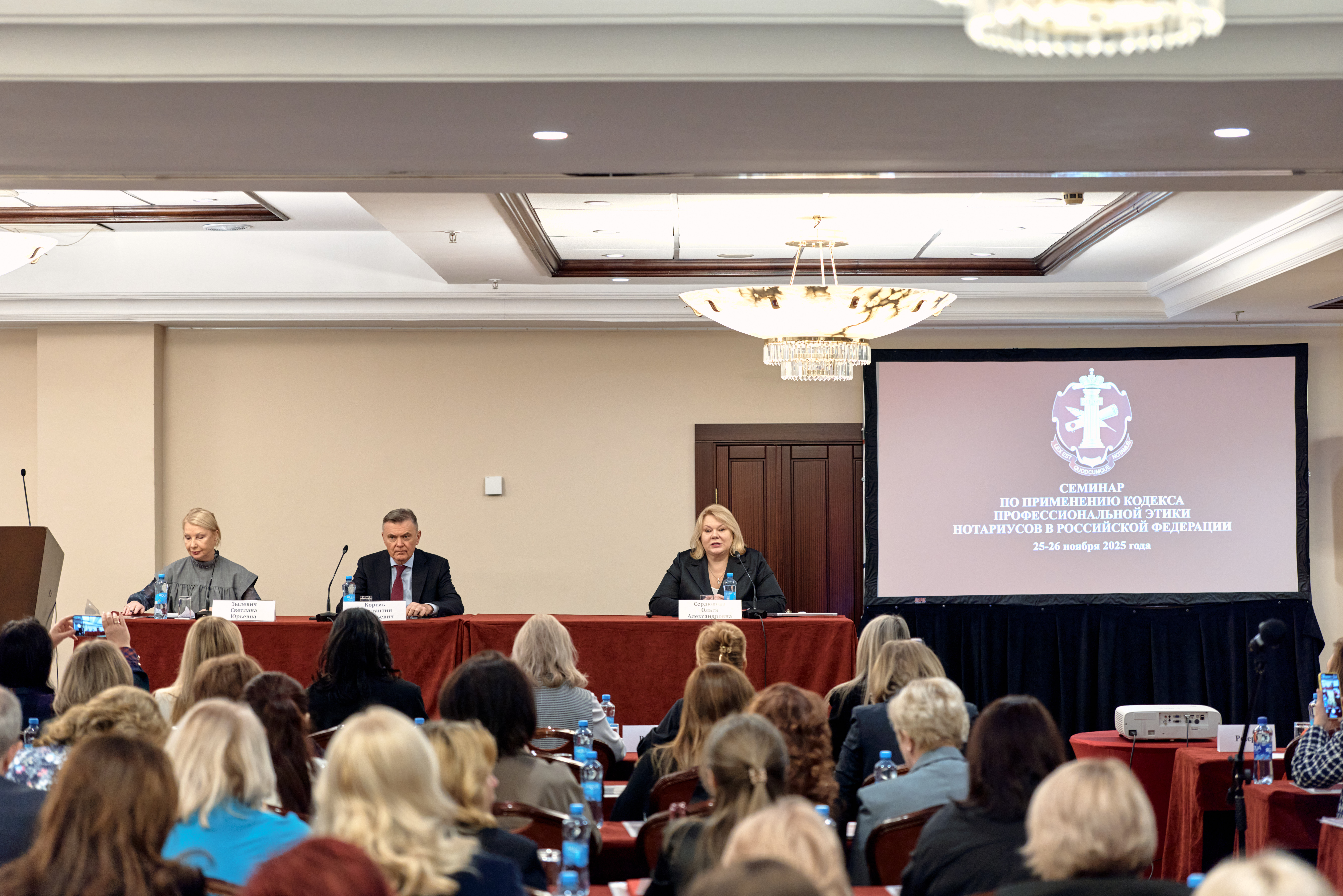 С приветственным словом к участникам семинара обратился президент Федеральной нотариальной палаты Константин Корсик«Вопросы этики играют большую роль для развития института нотариата, для формирования позитивной оценки нашей работы как со стороны государства, так и со стороны общества. Соблюдение единых этических стандартов — это необходимое требование для всех членов нотариального сообщества», — подчеркнул глава российского нотариата.